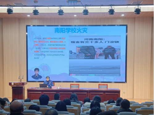 王干事结合南阳学校火灾、江西沿街店铺火灾、南京雨花台区高层住宅火灾等近期发生的热点消防事故,重点讲解了火灾发生的原因、怎样预防火灾、火场逃生基本知识等内容,将理论知识和现实生活中的真实案例紧密结合,深入浅出,切实提高了每位教师的消防防范意识。
