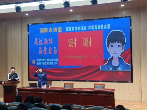 为进一步普及火灾预防和逃生自救知识,增强全体教职工的消防安全素质,保障学校消防安全,我校于3月7日下午在行政楼一楼学术报告厅举办郑州龙湖一中消防安全大讲堂,特别邀请郑州市中原区消防安全委员会、消防救援大队王春荣专干到校开讲,全体教职工参加讲座。