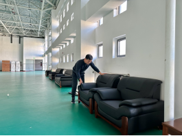为满足教师业余活动需求,总务处完善了食堂四楼运动馆的设施设备。一方面,对原有乒乓球案进行维修、增设两个乒乓球案、安装乒乓球场地挡板和乒乓球发球机,最大限度满足教师的运动需求。另一方面,在运动馆安放了沙发、茶几等设施,让教师们在运动间隙能够充分休息和放松,为教师们提供更加舒适、贴心的运动环境。