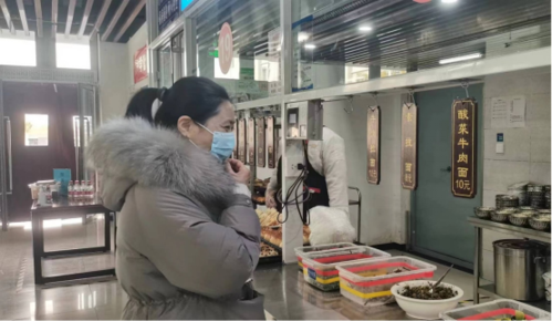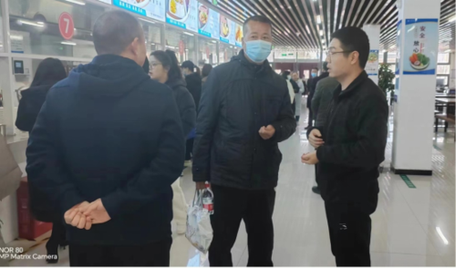 总务处主任窦智在餐厅门口迎接家长,欢迎家长的到来。窦主任和家长进行了亲切交流,对家长提出的食品安全问题及营养健康等问题作出回答。在餐厅经理的陪同下家长对餐厅一楼、二楼菜品认真了解,亲自品尝餐厅美味,特别是对餐厅拉面窗口称赞尤佳。家长和同学们进行亲切交流,了解孩子的心声。